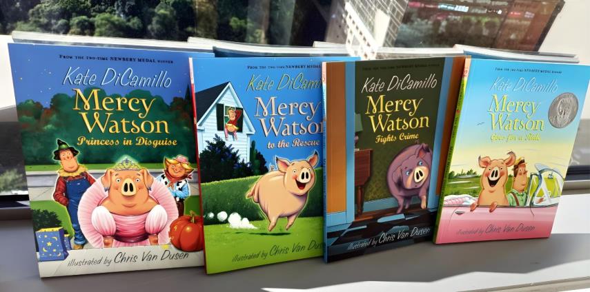 Mercy Watson是由Kate DiCamillo撰寫並由 Chris Van Dusen的一系列章節書籍。Mercy Watson 是該系列中的虛構豬。Mercy Watson 被華生夫人和先生稱為“豬奇蹟”。她喜歡吐司和黃油,真的很喜歡在她的吐司上放很多黃油。